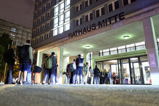 There were long queues to access shelter at Mitte town hall (Picture: Michael Ukas/DPA/Cover Images)